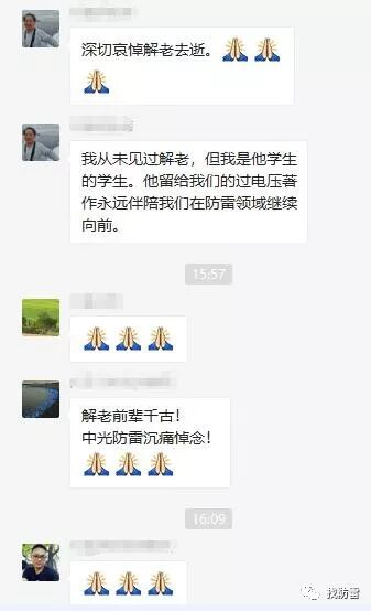 众多防雷业内人士也纷纷表达了对解广润老师的哀悼之情。